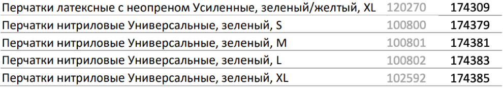 - меняются артикулы всех перчаток